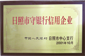 2001年10月,興業(yè)集團榮獲“日照市守銀行信用企業(yè)”