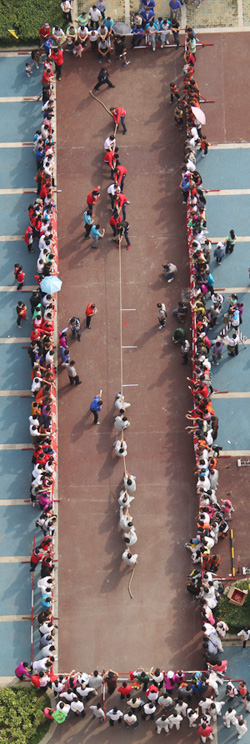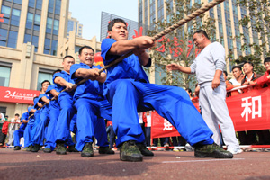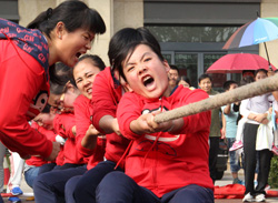 當天,來自興業(yè)集團各下屬單位的8支代表隊476名運動員精神飽滿地參加了“團體跳繩”、“開火車”、“協作運球接力”、“車輪滾滾”、“滾雪球”、“拔河”等團體項目的比賽,整個現場氣氛熱烈,充滿激情,充分展示了“務實、創(chuàng)新、拼搏、進取、奉獻”的興業(yè)精神和活力、和諧的企業(yè)風采。另外,興業(yè)社區(qū)中老年文體活動俱樂部在開幕式上進行了太極拳和健身操表演。精彩的開幕式表演和緊張激烈的比賽吸引了眾多市民駐足觀看。